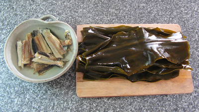 左が今回使った北海道名産「日高みついし昆布」 (210グラム中140グラム使用)